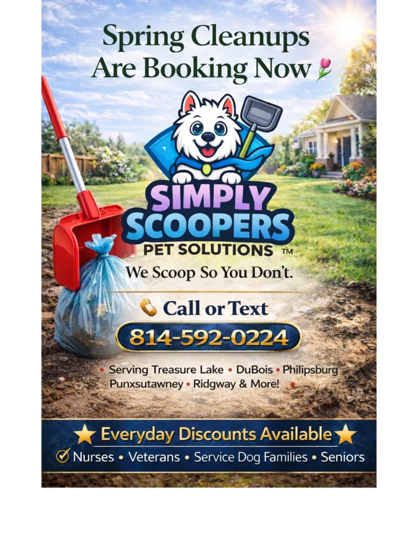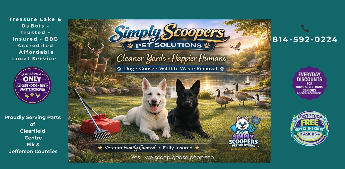 • The ONLY Scooper in Clearfield County handling Dog, Goose, & Deer Waste