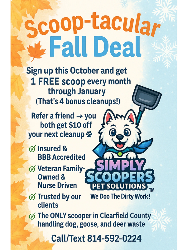 One Time Scooping & Maintenance Plans Keeping It Clean - Affordable - Convenient- Reliable In Dubois Clearfield County & surrounding areas Call Us for details